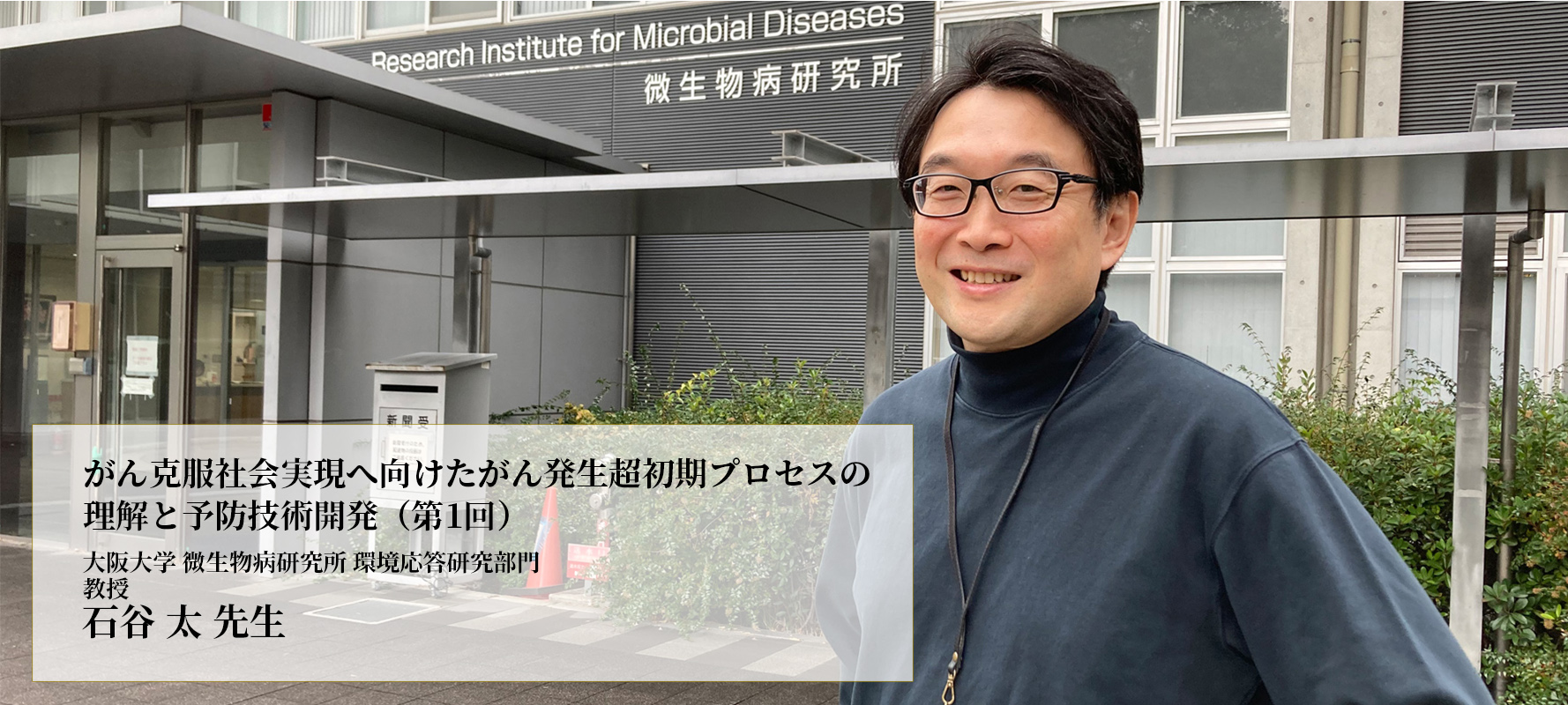 そのような状況において、これまで知られていなかった「がん発生超初期」メカニズムの解明と、予防技術の「シーズ」創出に取り組んでおられる、大阪大学微生物病研究所環境応答研究部門の石谷太先生にお話を伺いました。