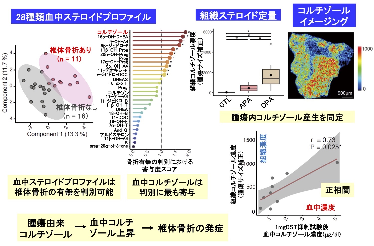 さらに解析を進めると、椎体骨折をした患者さんは腫瘍から分泌されたコルチゾールの血中濃度が高いことがわかりました。